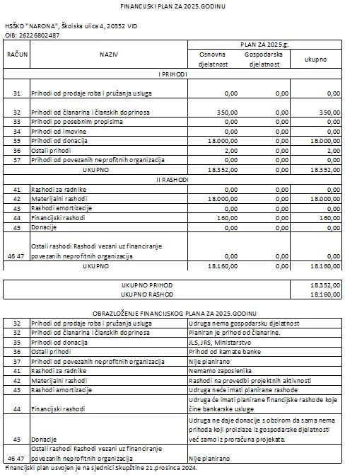 HRVATSKO STARINARSKO ŠPORTSKO KULTURNO DRUŠTVO "NARONA" Školska ulica 4 20352 VID |
